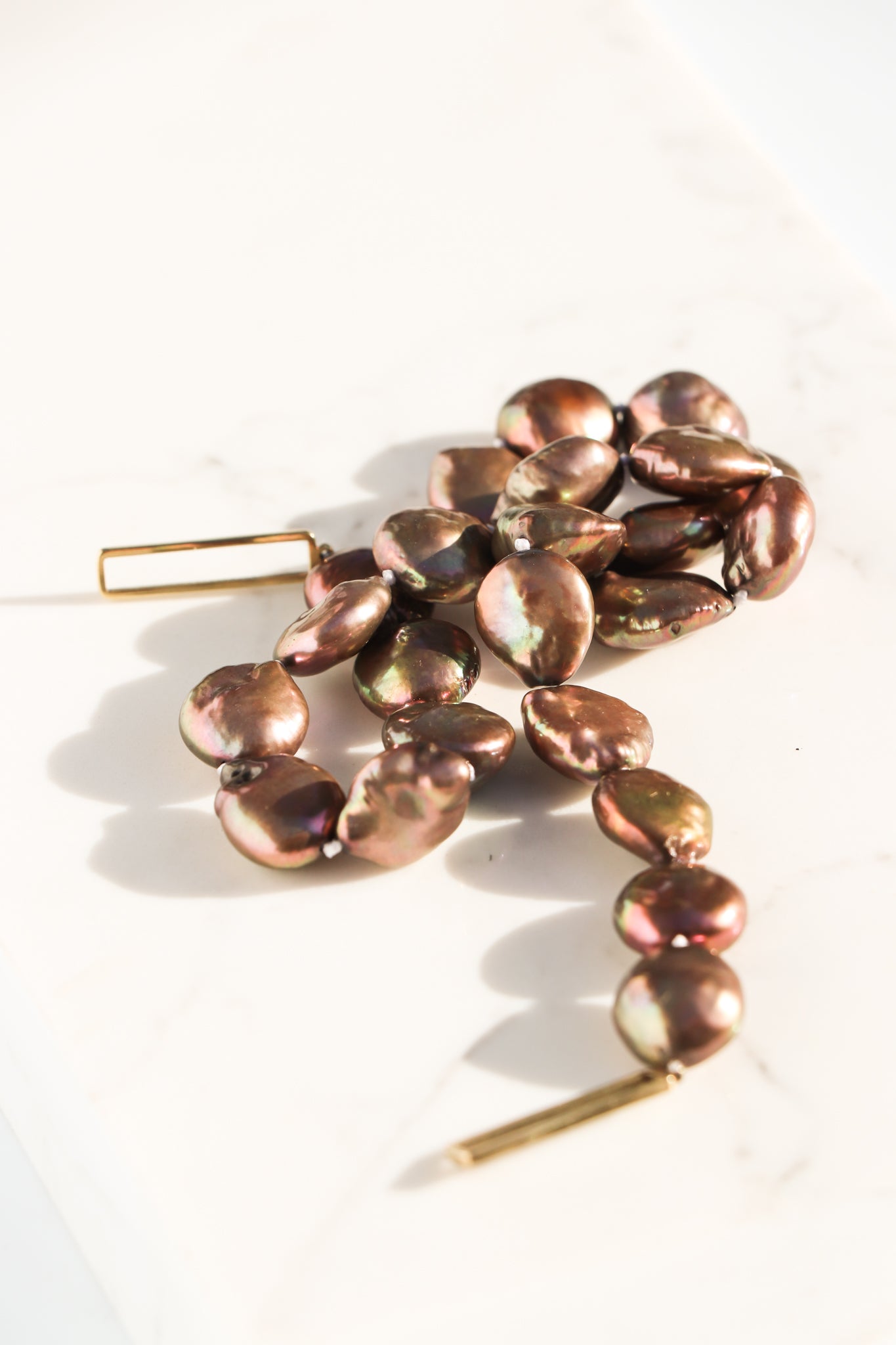 The Linear Pearl Arrangements aim to prompt your most creative juices. In application, the Linear Pearls can be coupled with the Archtype for a feature around your neck, the string of pearls can be wrapped around your wrist as a bangle, around your neck as a choker and used on the lapels of a suit or a blazer ensemble instead of a chain. We invite you to be as imaginative with these pieces as possible.